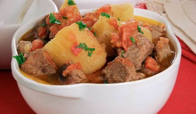 Volte ao fogo baixo e cozinhe por 5 minutos ou até a mandioca e a carne amaciarem.