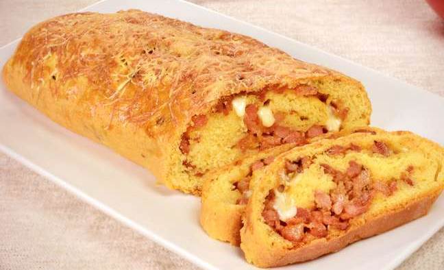 Enrole como rocambole, fechando as laterais, e coloque em uma fôrma untada e enfarinhada.