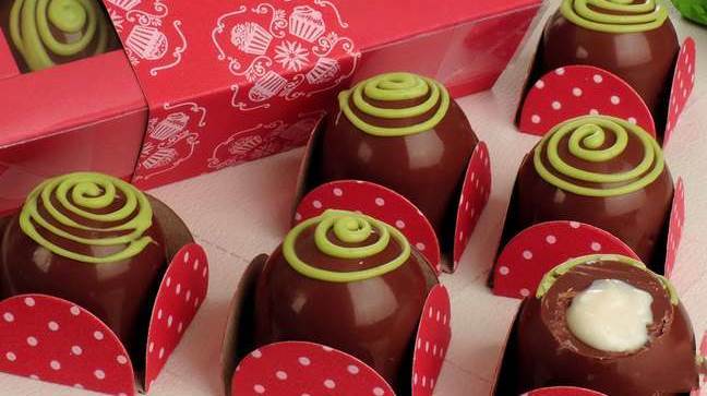 Corte uma pequena ponta e decore os bombons com riscos. Leve à geladeira por mais 10 minutos. Sirva.