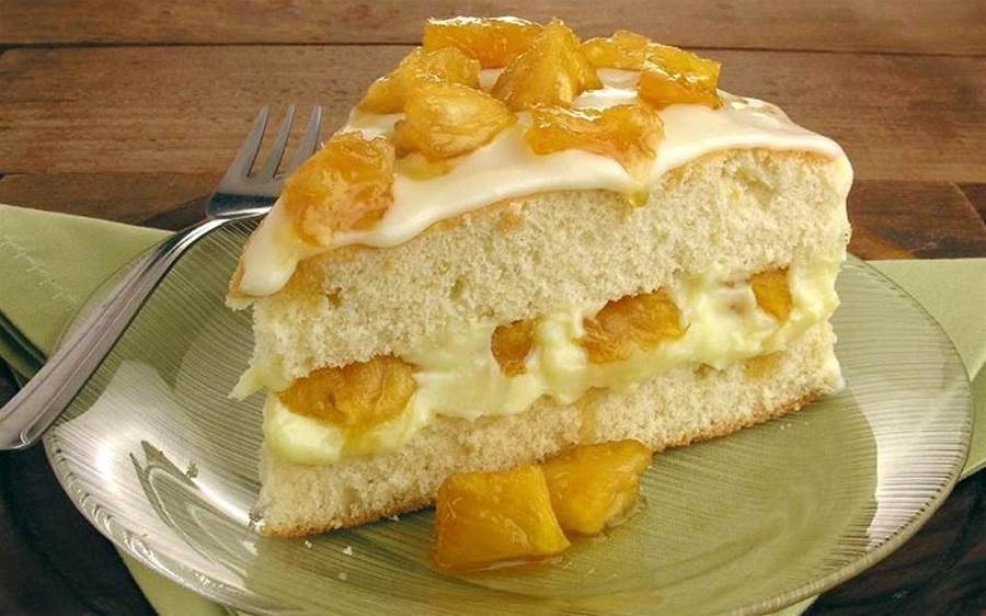 Desenforme o bolo depois de frio, corte ao meio, espalhe o recheio de creme em uma das partes e cubra com o abacaxi caramelado.
