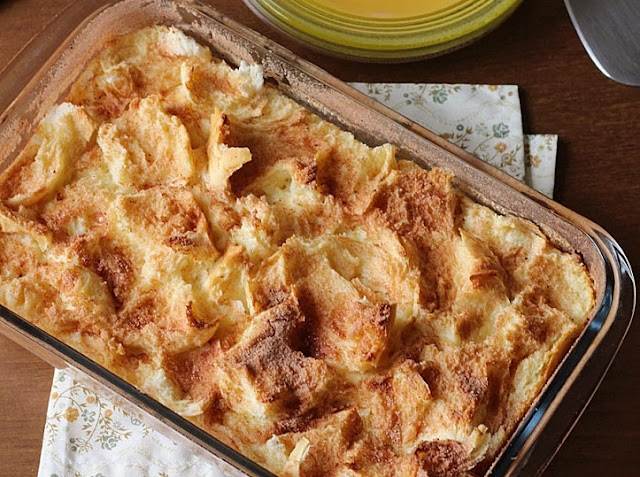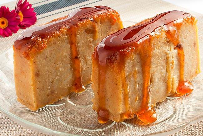 Deixe amornar, desenforme, regue com leite condensado, polvilhe com coco e sirva.
