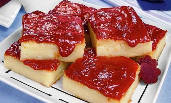 Para a calda, em uma panela, leve ao fogo baixo a goiabada, a água e a cachaça até derreter.