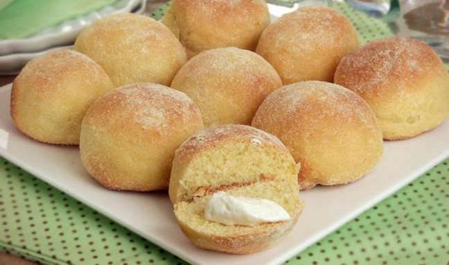 Coloque, uma do lado da outra, em uma fôrma grande untada e polvilhada com fubá.