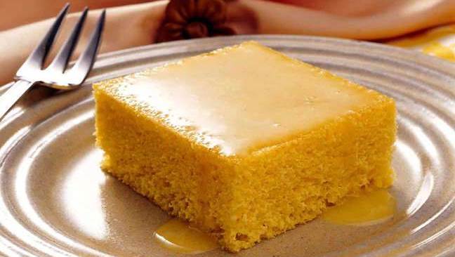 Em uma tigela, misture os ingredientes da calda e sirva sobre os pedaços de bolo.
