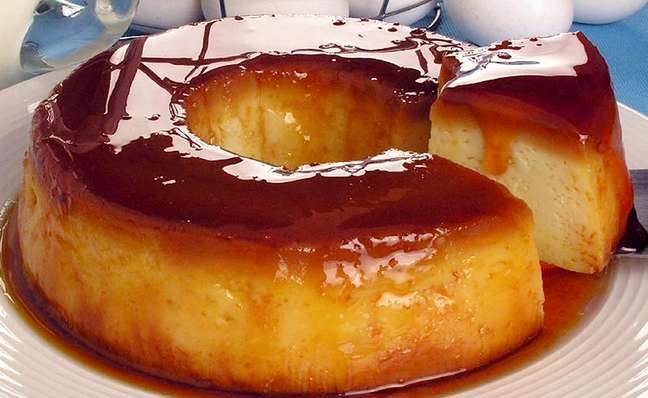Destampe a panela, retire a fôrma com cuidado para não se queimar, leve à geladeira por 4 horas, desenforme e sirva.