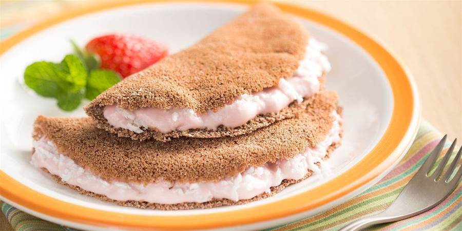 Coloque um pouco de recheio em cada disco de Tapioca reservado. Sirva.