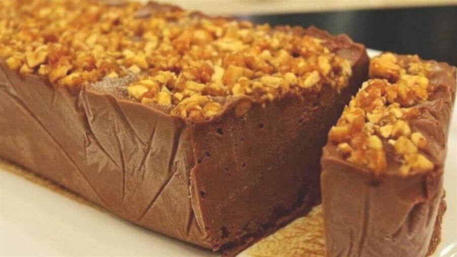 Bata a mistura na batedeira até formar picos moles. Incorpore ao creme de chocolate já frio e distribua em fôrma de bolo inglês forrada com plástico.