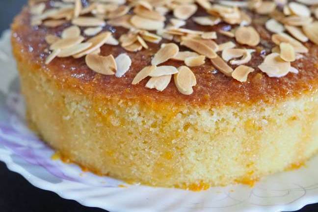 Despeje a calda sobre o bolo e decore com as amêndoas.