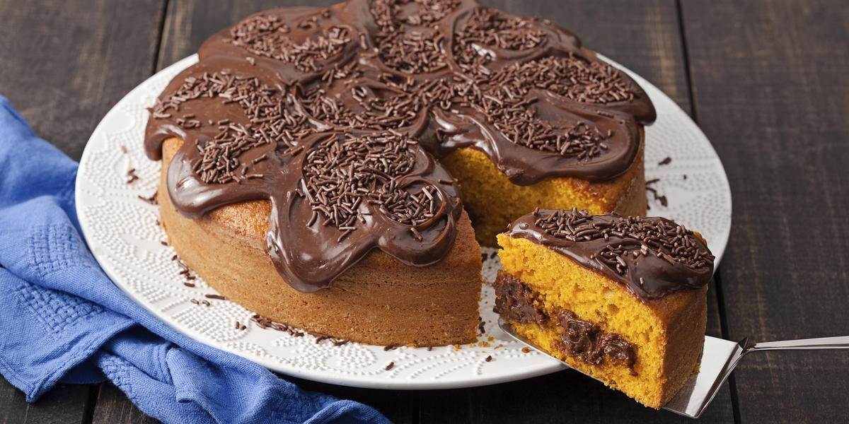 Desenforme ainda morno, cubra com o brigadeiro restante e decore com o chocolate granulado.