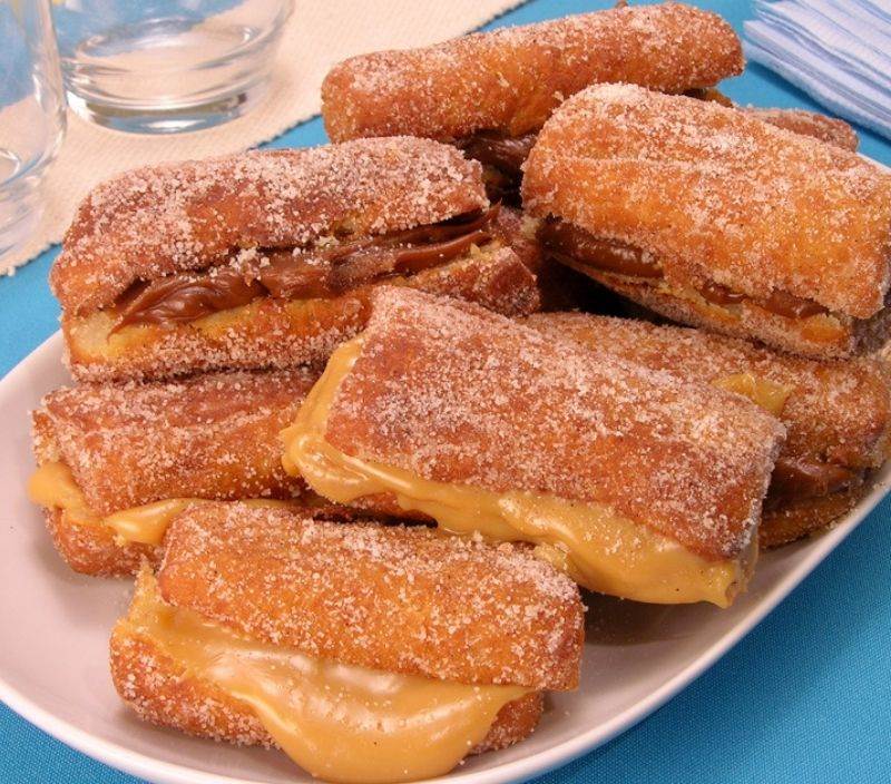 Frite em óleo quente e passe por açúcar misturado com canela. Recheie com brigadeiro ou doce de leite.