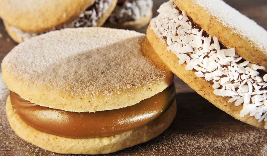 5) Depois de frios, cuidadosamente, una 2 círculos com uma camada generosa de doce de leite, e passe a lateral no coco ralado.