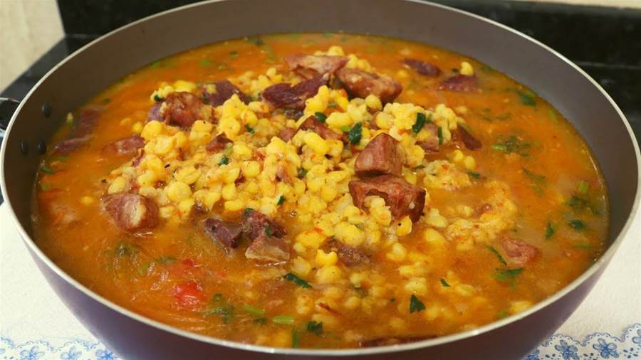 Na noite anterior deixe as carnes e o milho de molho.
