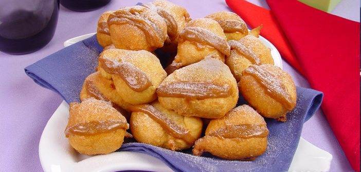 Escorra sobre papel-toalha, corte os bolinhos ao meio, sem separar as partes, recheie com um cubo de doce de leite, polvilhe com o açúcar e sirva.