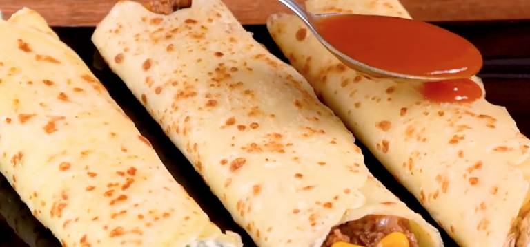 Recheie a massa das panquecas com um pouco do recheio e enrole-as.