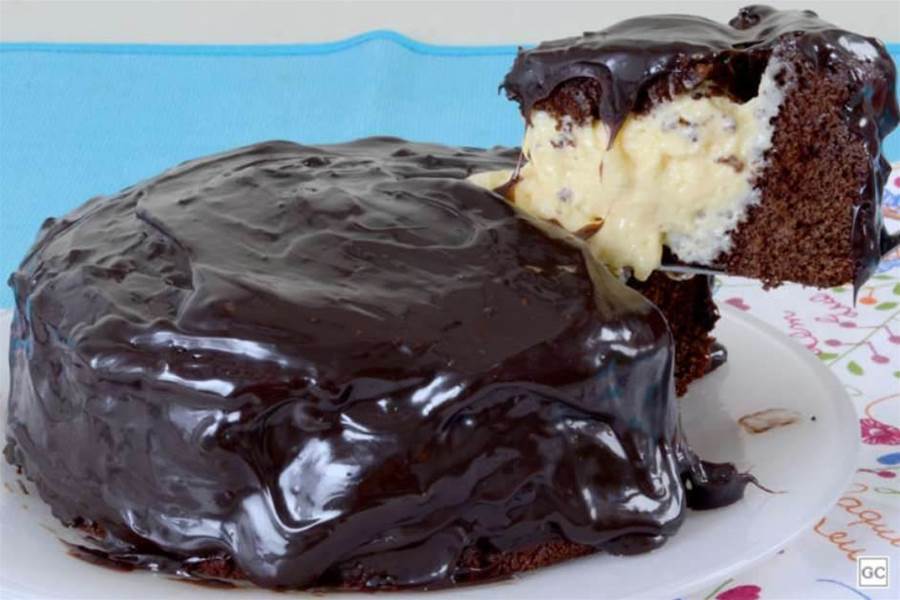 Leve ao fogo médio, mexendo, até engrossar. Corte a parte superior do bolo, retire o miolo e preencha com a mousse.