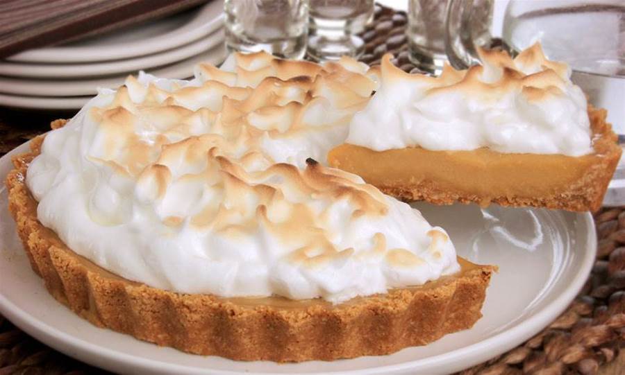 Coloque sobre o recheio da torta de forma decorativa e leve ao forno alto, preaquecido, por 5 minutos ou até dourar o merenguelevemente.