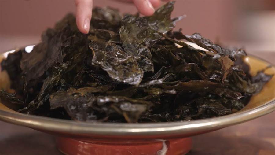 Com as mãos, pique o maço de couve e disponha os pedaços em uma assadeira;