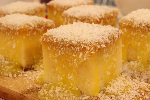 Despeje o leite condensado em fio e adicione o coco, a mandioca, o parmesão e a manteiga.