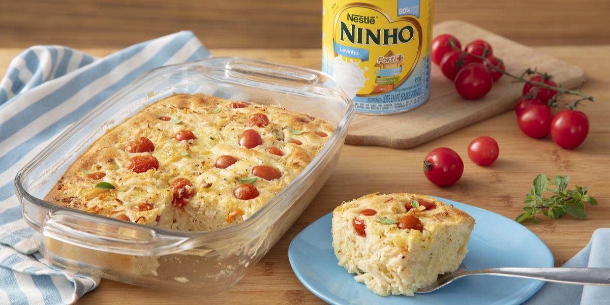 Em um liquidificador, bata os ovos, o óleo, o NINHO Levinho, a água e o sal.