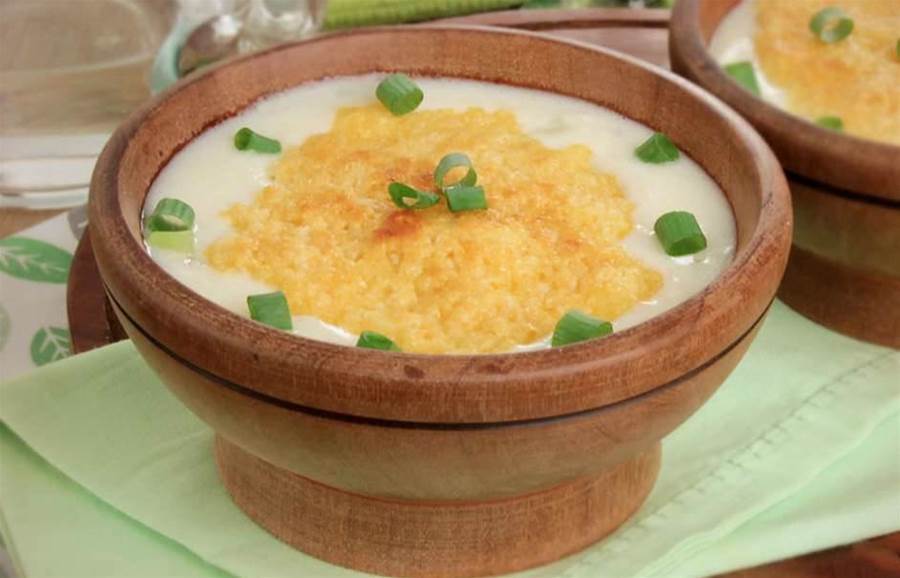 e o provolone, mexendo até derreter os queijos. Tempere com sal e noz-moscada. Divida o creme entre cumbucas individuais,