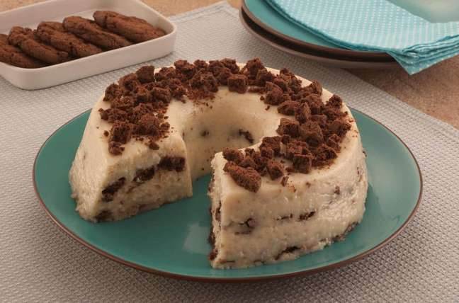 Leve à geladeira por 4 horas, desenforme, polvilhe o cookie restante e sirva.