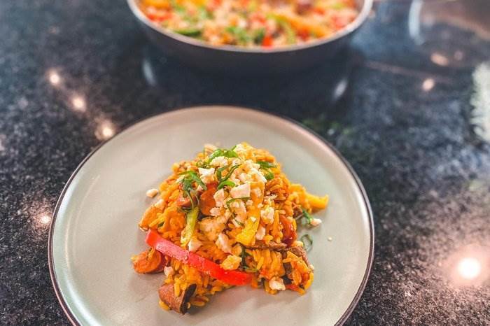 4 xícaras de caldo de carne, frango ou legumes (pode usar água, mas o caldo é sempre melhor)